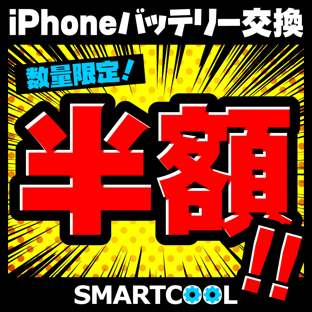 iPhoneバッテリー交換が半額になるオープンキャンペーンを実施します。