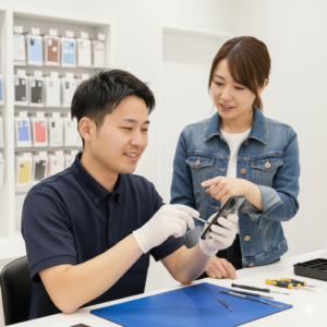 画面(画面割れ,ガラス割れ,表示不良,液漏れ,画面が映らない)/バッテリー(減りが早い,急に電源が落ちる,充電できない)/水没/カメラ(ぼやける,ひび割れ,ピント合わない,真っ暗)/充電不良(充電できない,反応しない,グラグラする,詰まってる,接触が悪い)/通話不良(音がこもる,音が出ない,相手の声が聞こえない,自分の声が聞こえない,音が小さい)/背面(背面割れ,ガラス割れ)/ホームボタン(押しても反応しない,効かない)/スリープボタン/音量ボタン/スピーカー/起動不可(電源が入らない,電源がつかない)/基板(基板ショート,データ復旧)